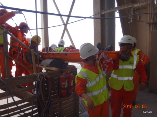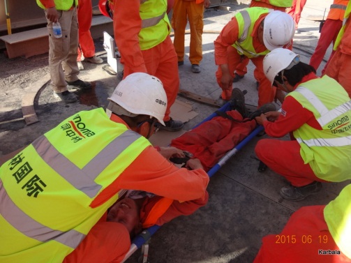 伊拉克卡爾巴拉項(xiàng)目部根據(jù)目前工地正逢高溫氣候季節(jié)和施工繁忙階段,針對(duì)性分別開展了受限空間作業(yè)突發(fā)事故和高溫環(huán)境下作業(yè)發(fā)生中暑的應(yīng)急救援演練。