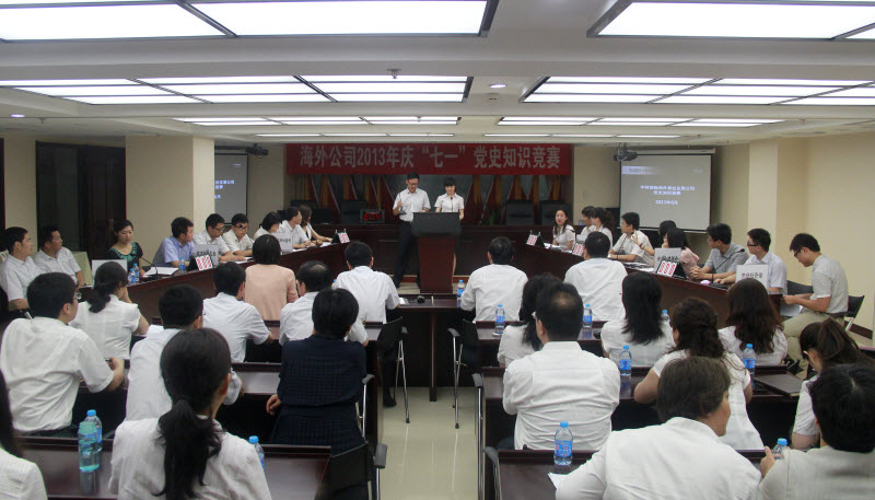 6月28日,海外公司在多功能會議室組織召開2013年慶“七一”黨史知識競賽,參加的人員有公司總經(jīng)理孟慶林、海外公司副總經(jīng)理高超、楊蕾,總工程師陳寶華以及支部拉拉隊(duì)員約60余人。