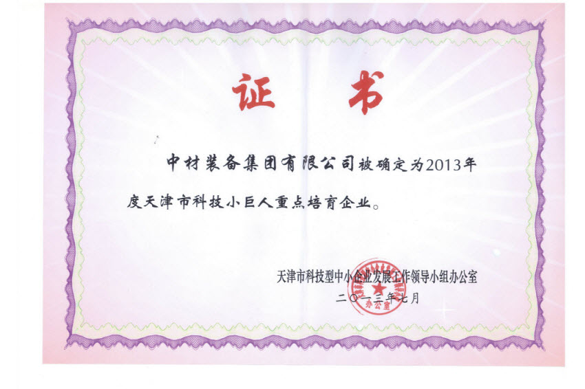 近日,中材裝備集團(tuán)被天津市科技型中小企業(yè)發(fā)展工作領(lǐng)導(dǎo)小組辦公室評(píng)定為2013年度天津市科技小巨人重點(diǎn)培育企業(yè)。