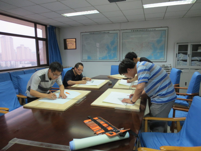由于時間緊迫,參賽隊從組建伊始,便進入了緊張的備賽階段。公司專門購置了本次比賽所使用的專業(yè)技術規(guī)范,并提供了繪圖板、丁字尺等比賽用具。為了做到比賽、工作兩不誤,每天下班后,參賽隊員們都會利用晚上的休息時間集中到804會議室進行賽前準備學習和模擬訓練。大家仔細研讀了本次大賽的技術文件,明確備戰(zhàn)重點。對于理論考試部分,大家根據(jù)技術條件中列出的規(guī)范知識點進行有針對性地強化學習;對于實際操作比賽部分,大家根據(jù)技術條件設計了模擬試題,并進行了集中訓練,溫習了圖板手工繪圖。經過賽前準備,大家對本次大賽做到了有的放矢、了然于胸。