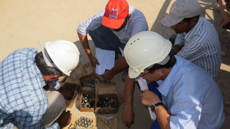 項目所在地位于伊拉克港口城市巴士拉,自然條件惡劣,常年高溫少雨。項目第一船設(shè)備已于2013年6月底順利抵達現(xiàn)場,第二船設(shè)備于8月16日從上海港發(fā)出。現(xiàn)場管理團隊于8月19日進入現(xiàn)場,現(xiàn)場的同志頂著炎炎烈日,發(fā)揚不怕苦、不怕累的精神,指導(dǎo)業(yè)主人員安裝立磨、大收塵器及提升機,開展開箱工作。項目經(jīng)理部與業(yè)主方充分協(xié)商,按照既定的計劃,組織人力、物力全力配合業(yè)主,爭取早日實現(xiàn)第一臺磨機的投產(chǎn)目標。
