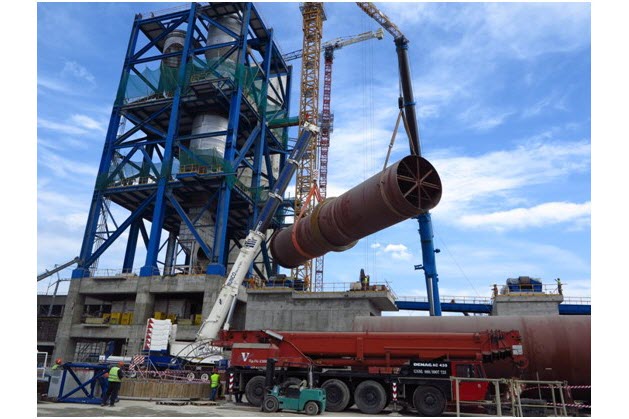 回轉(zhuǎn)窯吊裝歷時(shí)3天,整個(gè)過程緊張而有序。為了安全、高質(zhì)量地完成回轉(zhuǎn)窯吊裝作業(yè),項(xiàng)目部管理人員與回轉(zhuǎn)窯當(dāng)?shù)厥┕り?duì)Stroyproduct在吊裝前就施工方案及風(fēng)險(xiǎn)分析進(jìn)行了多次討論、協(xié)商,并反復(fù)對(duì)吊車吊裝性能及高風(fēng)險(xiǎn)內(nèi)容進(jìn)行研究。通過精心安排、合理布置,在保證各項(xiàng)安全措施可靠到位的前提下,吊裝作業(yè)緊鑼密鼓地展開。經(jīng)過項(xiàng)目相關(guān)人員的連續(xù)奮戰(zhàn),最后一節(jié)筒體于11月7日10時(shí)58分合攏。至此,回轉(zhuǎn)窯吊裝順利完成!
