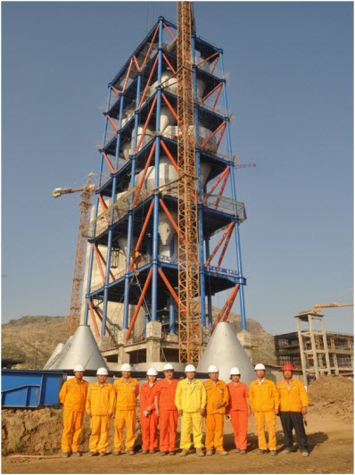 2014年1月13日,當(dāng)?shù)貢r(shí)間16時(shí),由中材國(guó)際(南京)總承包,邯鄲分公司承建的緬甸旦多淼日產(chǎn)5000噸熟料水泥生產(chǎn)線窯尾框架順利封頂。