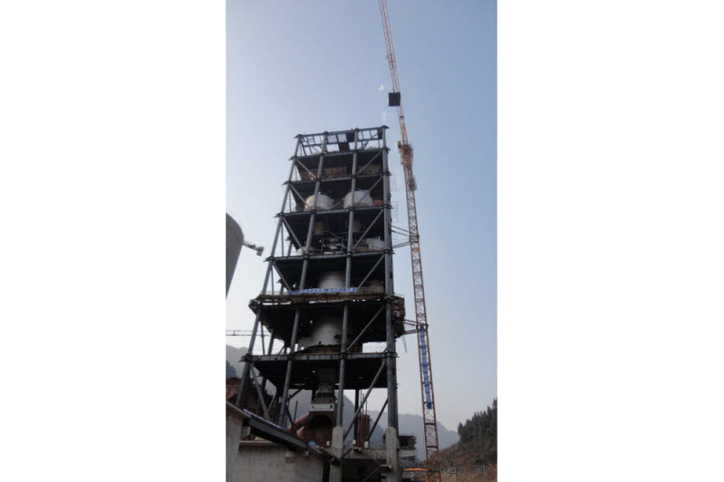 2013年10月18日,窯尾開始吊第一鉤。項目地處巴中市南江縣山谷之中,框架安裝場地及框架制作場地非常狹小,天氣時有降雨。自項目開工以來,項目部管理人員精心組織、合理安排施工,克服了陰雨、施工場地狹小等困難,順利完成窯尾封頂任務(wù)。