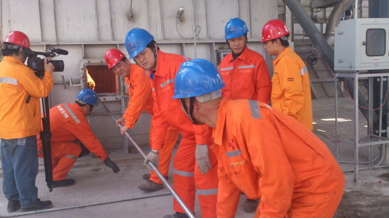 上午9:30,點火儀式正式開始。業(yè)主方、我公司項目部、各分包單位員工、業(yè)主方兄弟單位員工等列隊參加了點火儀式。10:08,在震耳欲聾的鞭炮聲中,承德金隅項目回轉窯一次性點火成功。熊熊燃燒的火焰既表明項目部全體員工過去一年的辛苦工作獲得了豐碩成果,也預示著項目部后續(xù)的工作將會紅紅火火、更創(chuàng)新高。