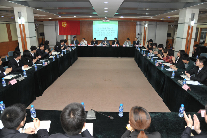 為紀(jì)念“五四愛國運(yùn)動(dòng)”95周年, 4月14號,中材裝備集團(tuán)團(tuán)委舉辦2014年紀(jì)念“五四”青年節(jié)座談會(huì)暨“有效溝通 贏在執(zhí)行”主題讀書活動(dòng)啟動(dòng)大會(huì)。來自集團(tuán)京津地區(qū)12個(gè)支部36名代表參加了大會(huì)。中材裝備集團(tuán)董事長、黨委書記宋壽順,黨委副書記張建文,副總經(jīng)理隋明潔、韓長凱、陳慶十,總工程師狄東仁、許芬,以及黨群工作部部長陳洪受邀出席參加。會(huì)議由集團(tuán)團(tuán)委書記趙延主持。