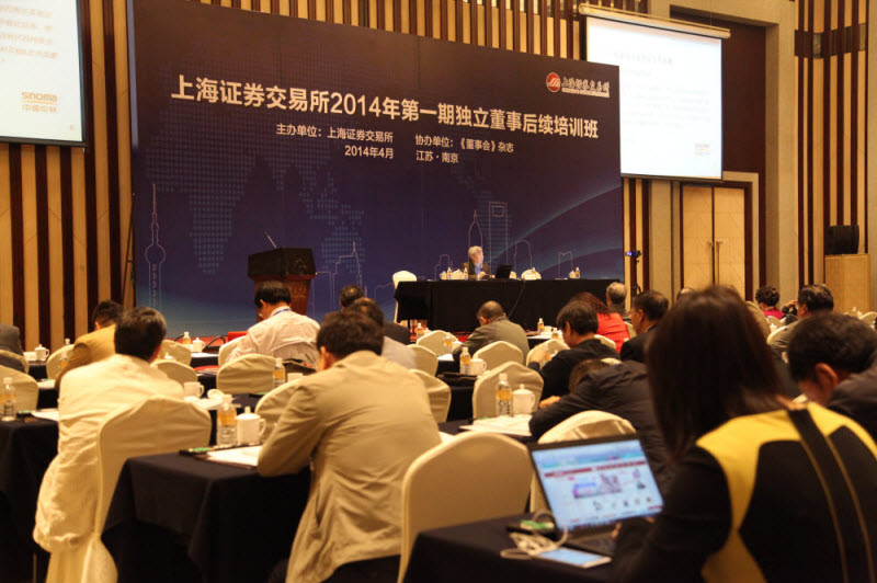由上海證券交易所主辦、董事會(huì)雜志社承辦的2014年第一期獨(dú)立董事后續(xù)培訓(xùn)班于4月21日-22日在南京舉辦。中材國(guó)際董事長(zhǎng)王偉先生作為特邀講師以上市公司董事會(huì)文化建設(shè)為主題與滬市上市公司的兩百余位獨(dú)立董事進(jìn)行了觀點(diǎn)分享與交流,具體內(nèi)容圍繞上市公司董事會(huì)文化建設(shè)的必要性、董事會(huì)文化建設(shè)現(xiàn)狀及董事會(huì)文化建設(shè)方向及途徑等方面展開(kāi)。王偉董事長(zhǎng)認(rèn)為上市公司董事會(huì)文化的核心是責(zé)任、規(guī)范、獨(dú)立與包容,圍繞這些核心價(jià)值觀建設(shè)首先應(yīng)從股權(quán)結(jié)構(gòu)、治理制度及激勵(lì)約束機(jī)制等方面下功夫。公司蔣中文副總裁陪同參加。