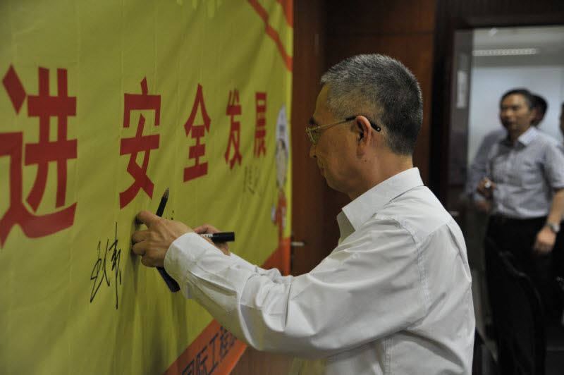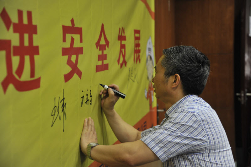 會(huì)后,主會(huì)場(chǎng)全體參會(huì)人員在“強(qiáng)化紅線意識(shí),促進(jìn)安全發(fā)展”的主題橫幅上進(jìn)行了安全簽名承諾。