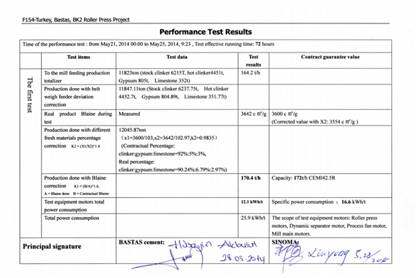 5月25日9:23,由中材國際天津公司承建的土耳其Bastas輥壓機技改項目順利完成了性能考核。