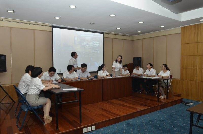 本次英語培訓(xùn)班分為A班和B班,共有25名學(xué)員參加。學(xué)員們在匯報演出中將日常工作與英語學(xué)習(xí)有機結(jié)合,通過情景模擬、角色扮演等形式,展示了自己的學(xué)習(xí)成果。A班學(xué)員將與業(yè)主的技術(shù)談判搬上舞臺。12名學(xué)員分別扮演業(yè)主和公司代表,聲情并茂地就水泥廠建設(shè)過程中可能遇到的技術(shù)問題進(jìn)行了討論,并對可能出現(xiàn)的極端氣候問題提出了解決方案,討論話題涉及到氣候環(huán)境、地理區(qū)位、工廠布局、費用預(yù)算以及工程施工中的各項細(xì)節(jié)。在談到地理區(qū)位時,學(xué)員列舉了西藏高天水泥廠等實例,證明我公司的技術(shù)攻關(guān)能力。B班學(xué)員模擬了公司年會籌備會議,他們用流利的英語就公司年會舉辦地點、形式及內(nèi)容進(jìn)行了激烈討論。大家全情投入,爭先孔后地表達(dá)自己的觀點。在談到年會中要表演哪些節(jié)目時,學(xué)員們情不自禁地哼起歌曲。整場匯報表演既展現(xiàn)了學(xué)員們流利的英語表達(dá)能力,又不乏風(fēng)趣幽默。