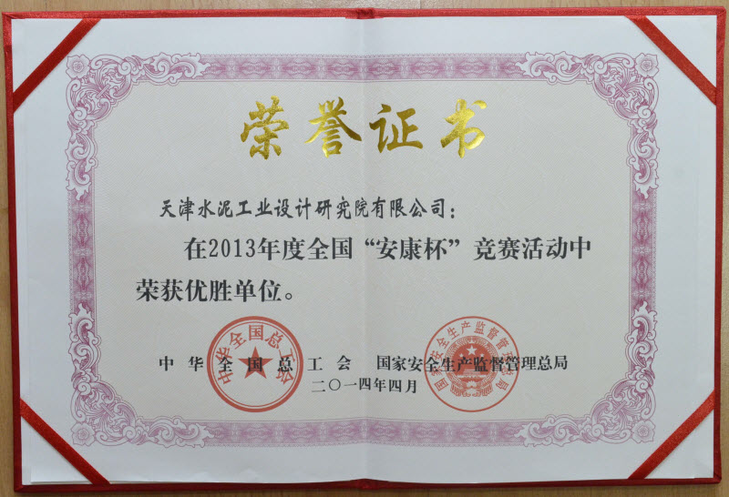 近日,中華全國(guó)總工會(huì)、國(guó)家安全生產(chǎn)監(jiān)督管理總局對(duì)2013年度全國(guó)“安康杯”競(jìng)賽先進(jìn)集體和個(gè)人進(jìn)行了表彰,中材國(guó)際天津公司被授予全國(guó)“安康杯”競(jìng)賽優(yōu)勝單位榮譽(yù)稱號(hào)。此次競(jìng)賽活動(dòng)全國(guó)共有43.6萬家企事業(yè)單位參加,其中僅有2270家獲此殊榮。