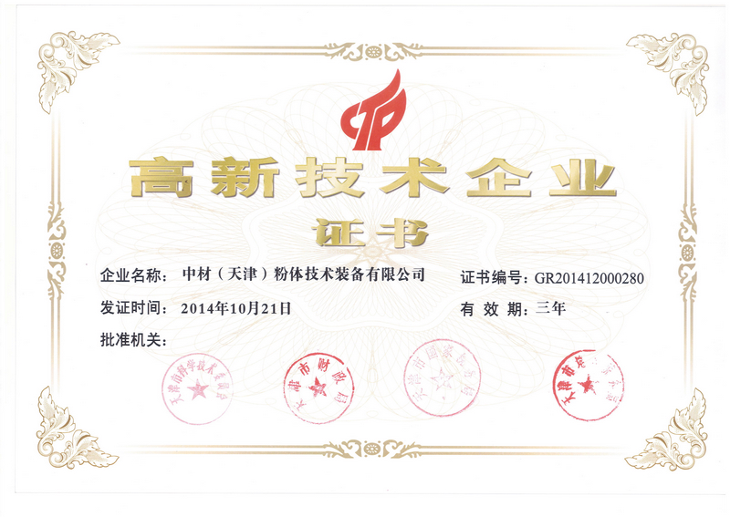 近日,中材裝備集團有限公司及所屬中材(天津)粉體技術(shù)裝備有限公司、中材(天津)控制工程有限公司通過了天津市高新技術(shù)企業(yè)再認定,獲得了由天津市科學(xué)技術(shù)委員會、天津市財政局、天津市國家稅務(wù)局和天津市地方稅務(wù)局聯(lián)合頒發(fā)的《高新技術(shù)企業(yè)證書》,發(fā)證日期為2014年10月21日,高新技術(shù)企業(yè)資格有效期為三年。