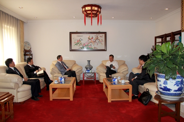 2015年8月5日,駐剛果(金)大使館王同慶大使應(yīng)約會(huì)見(jiàn)中材國(guó)際董事長(zhǎng)宋壽順一行。海外公司執(zhí)行董事、總經(jīng)理孟慶林,副總經(jīng)理高超,海外公司剛果(金)項(xiàng)目部現(xiàn)場(chǎng)經(jīng)理柏玉泉及綜合辦副主任閆宇等會(huì)見(jiàn)時(shí)在座。