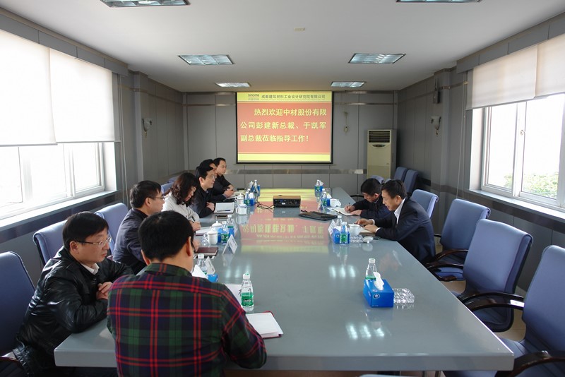 1月13日,中國中材股份有限公司彭建新總裁、于凱軍副總裁一行到成都院有限公司調研指導工作,成都院有限公司董事長焦烽、黨委書記馮艷、總經理吳宏等參加了座談。