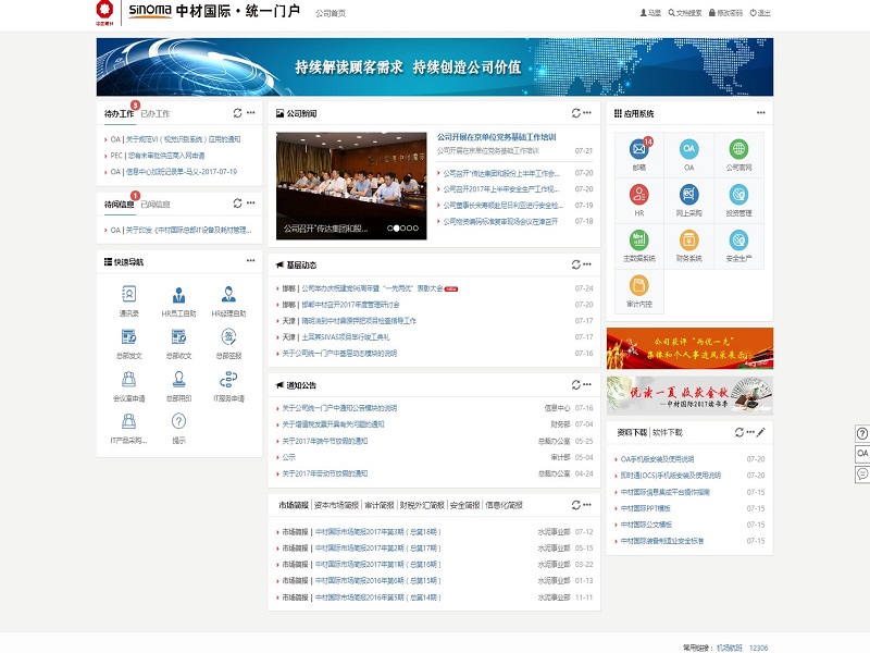 2.統(tǒng)一門戶系統(tǒng),用于實現(xiàn)公司全員統(tǒng)一登錄的門戶,按權限查看總部及各單位共享的新聞、簡報和資料,且將各統(tǒng)建系統(tǒng)的流程和待辦集中到統(tǒng)一門戶中顯示;