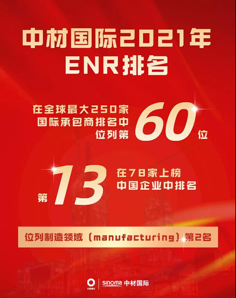 美國(guó)《工程新聞紀(jì)錄》雜志(ENR)2021年各項(xiàng)排名結(jié)果近日揭曉,中材國(guó)際再次上榜。