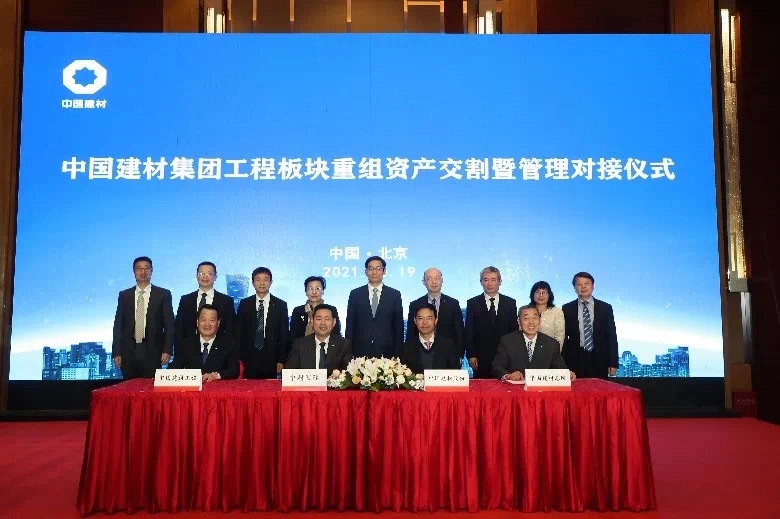 在儀式上,中材國(guó)際與中國(guó)建材股份、中國(guó)建材總院、中國(guó)建材工程的代表簽署了資產(chǎn)交割確認(rèn)書(shū)。
