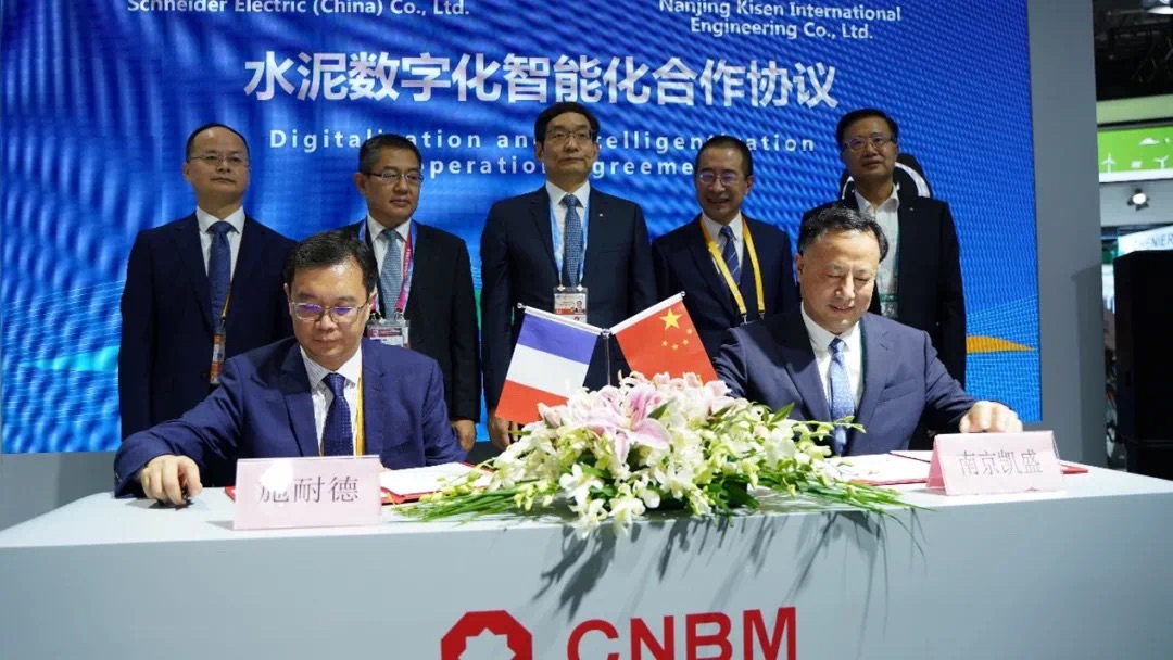進(jìn)博會(huì)首日,中國建材集團(tuán)組織了“綠色低碳集中簽約”活動(dòng),公司所屬哈茲馬克、南京凱盛分別與華新水泥、施耐德簽署戰(zhàn)略合作協(xié)議,商務(wù)部歐洲司司長(zhǎng)翟謙、中國建材集團(tuán)黨委書記、董事長(zhǎng)周育先、中國建材股份副總裁余明清見證了合作簽署。